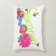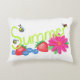 Travesseiro do verão do divertimento! "Verão" escrito em um design tirado mão com flores, bagas, e insetos do verão em torno das letras.