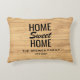 Um travesseiro decorativo personalizado que apresenta um fundo texturizado de madeira leve com a citação "Home Sweet Home". Adicione o sobrenome da sua família a este produto para lhe dar um toque pessoal.