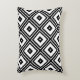 Este travesseiro decorativo do acento caracteriza um teste padrão abstrato retro contemporâneo de quadrados preto e branco aninhados do diamante.