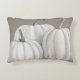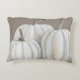 Três abóboras brancas em uma cinza de fundo marrom. Enfeite de queda.