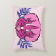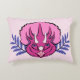 Um retrato triceratops, rosado e roxo, cinza-rosa, flanqueado por folhas abstrato púrpuras é o objeto do trabalho de arte gráfico neste travesseiro retangular.