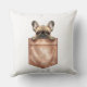 Adicione um toque de amor por cachorros ao seu sofá ou cama. Esta almofada apresenta um design trompe-l'oeil de um bolso de tecido com um cachorro Bulldog Francês dentro. Isolado em um fundo branco limpo, combina com qualquer decoração moderna de casa ou estilo aconchegante.