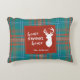 Travesseiro de sotaque de natal doce, doce lar, bonito, que você pode personalizar facilmente clicando no botão "Personalizar", apresentando silhueta de veados e clã Wilson tartan em laranja, e verificação de turquesa. Perfeito para suas noites confortáveis durante os feriados. Faz um presente de excelente