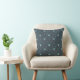 Este travesseiro decorativo apresenta um padrão tendencial de silhuetas da cabeça de cervo com curvas, setas estilizadas e pequenos flocos de neve com efeito texturizado em tons de azul de relógio sobre fundo de terra profundo. Procure ID861 a ID864 para ver opções de cores adicionais e outros produtos neste conjunto de design de Natal moderno.