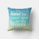 Este travesseiro diz o verão! Do fundo do ombre em máscaras bonito do azul, da cerceta e do verde. Ao texto que diz deixe a areia ser seu assento como as ondas batem seus pés. Um esboço do esboço da beira da estrela do mar o travesseiro e adiciona textura interessante. Este travesseiro é grande para a decoração do casa de praia ou a home com um tema litoral do oceano.
