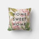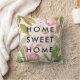 Este travesseiro apresenta flores cor-de-água cor-de-rosa-claro e folhas verdes-de-moda, com as palavras "lar doce lar" no texto preto moderno. Nós usamos arte do Crio do Corte.