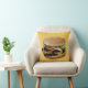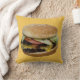 Fotografia de um delicioso cheeseburger sobre fundo amarelo personalizável. Parte traseira do travesseiro correspondente a amarelo personalizável.