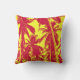 Design de palmeira tropical em efeito pós-erizado vermelho e amarelo. Almofada de design com padrão natural de árvores. Palmeiras tropicais.