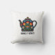 Um design de bule de chá preto com padrão de flor com uma arte popular sente isso.