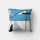 Incomum, ângulos artísticos. O abstrato, formas geométricas criam um design contemporâneo mas inspirado retroativamente em azul médio, cinza e branco com elementos pretos. A imagem é transposta horizontalmente em cada lado. Inspirados no estilo Moderno do século Médio, os designs projetam uma qualidade leve, colorida e chica, uma vibração artística e sofisticada para a área viva, o quarto, o espaço de trabalho, o terraço ou o decor do pátio. Há também uma sensação de instabilidade e calma, uma ambiência relaxada e confortável para o seu espaço pessoal. Há muito potencial decorativo nesta peça de sotaque, que se ajustado com muitos estilos, de retrô/safra a rancho rústico a loft urbano moderno ou alta.
