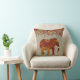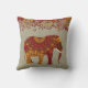 Belo ornamentado decorou elefante indiano em adoráveis tons autóctones de amarelo ouro e vermelho em uma almofada texturizada de falso cinza. Um travesseiro de declaração de acessório de na moda home. Elefantes de amor clicam na imagem abaixo para ver mais