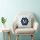 Almofada Design de Monograma do Marinho de Colheita Azul e