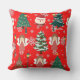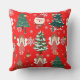 Design tradicional de Natal vermelho com texto, Papais noeis e árvores de Natal Travesseiro decorativo para a família.
