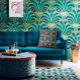 Este design de ventoinha azul e dourado elegante tem o padrão da ventoinha indo em todas as direções, o que cria um padrão adorável. Uma almofada decorativa linda que vai enfeitar o seu sofá ou cama.