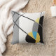 Design abstrato com cores e formas modernas em preto, amarelo, branco e azul para o seu decoro doméstico, este travesseiro personalizado só pode ser encontrado aqui.
