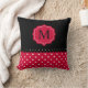 Uma sugestão de retro com este teste padrão de bolinhas vermelho, junto com o fundo e a área pretos da etiqueta para seu monograma feito sob encomenda.