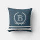 Design monograma com coroa de louros e decoração de listras em fundo azul