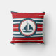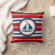 Design náutica com decoração em forma redonda de embarcações à vela, em fundo listrado vermelho, azul e branco