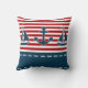 Design náutica com barco à vela e decoração da âncora em fundo listrado vermelho e branco