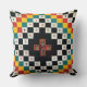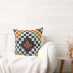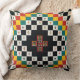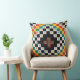 Pequenos quadrados multicoloridos formam uma forma de diamante no tecido impresso.