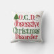Caracterização engraçada da decoração da sala do Natal papai noel, árvore de Natal vermelha e verde e OCD. Eu tenho OCD, mim sou louco obcecado com a época natalícia. Eu amo o Natal e este travesseiro branco bonito com escrita vermelha e verde.