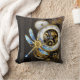 Marcações antigas com engrenagens de ouro e latão, decoradas com libélula mecânica sobre fundo castanho e listrado. Steampunk.