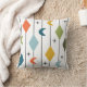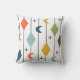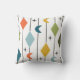 Este travesseiro decorativo tem um design moderno século médio de linhas verticais com diamantes e bumerangs, com rajadas de estrelas espalhadas ao fundo.