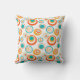 Este travesseiro decorativo tem um design moderno do século médio de círculos concêntricos em ouro, laranja e turquesa sobre fundo branco.