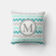 Os ziguezagues brilhantes elegantes e modernos da viga do azul de turquesa da cerceta, das cinzas e do branco listram o travesseiro decorativo decorativo do monograma feito sob encomenda do teste padrão. Inteiramente customizável, adicione sua própria inicial para um artigo home verdadeiramente original da decoração.