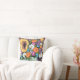 papoilas alaranjadas, margaridas, e wildflowers assorted do rosa roxo, azul, branco, e quente, dobrados toda em um balde de madeira verde chippy idoso. O fundo é mistura de roxos profundos, verdes e amarelos ensolarados, polvilhados com os brushstrokes de cores assorted dos wildflowers. Este travesseiro adicionaria um toque colorido da casa da quinta a qualquer parte de sua casa, ou seria um grande presente para qualquer um que aprecia baldes de wildflowers coloridos!