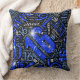 O texto "Feliz Aniversário Doce 16" em azul, com efeitos brilhantes, forma esta elegante palavra travesseiro decorativo de design de de nuvens. O fundo preto é opcional e pode ser alterado se preferido. Procure ID265 para ver outras opções de cores e produtos adicionais com este design.