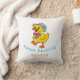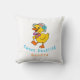 Um pequeno patinho giro e alegre com um arco roxo elegante e boné com fita rosa e flor esverdeada. É personalizado, você pode adicionar, remover ou modificar qualquer coisa que quiser e adicionar o nome do bebê.