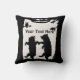 Esse travesseiro decorativo é feito em preto-e-branco com dois ursos dançando juntos na floresta sob árvores na grama, com uma coruja observando-os de uma árvore. Personalize seu texto com o modelo na frente e atrás.
