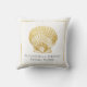 Dourada concha em uma praia moderna nomes de casamento e travesseiro de presente de manutenção de data que também pode dobrar como decor de casamento chic em uma moderna recepção tópica.