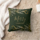 Personalize este na moda verde escuro e ouro original Feliz travesseiro de Natal com seu nome de família. Eu criei este pínus e bagas, desenhados com uma mão, com ouro, em fundo verde. O design contemporâneo está em um ouro que não um gradiente de tons neutros. A tipografia elegante moderna é editável. Não se esqueça de colocar seu nome de família no verso. Esta design botânica única seria também um excelente de Natal pessoal ou de presente de férias.