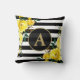 Adicione cor e estilo a qualquer sala com este lindo travesseiro de monograma listrado preto e branco! Adorado com rosas amarelados brilhantes e folhagem verde bonito do outono, o monograma dourado em círculo negro com elemento de borda dourada no centro é impressionante, tenda e contemporâneo. Do mesmo modo, em ambos os lados, isso seria um presente de excelente para qualquer um, ou um bom presente para si mesmo!