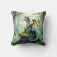 Travesseiro decorativo temático do dragão para o quarto do menino. Um dragão branco, renderizado em um estilo detalhado de ilustração aquática, perfura sobre uma antiga ruína de pedra coberta de musgo. A luz solar filtra através da cobertura densa da floresta, iluminando os movimentos de poeira dançando no ar. A balança do dragão brilha com matizes iridescentes, e seus olhos seguram uma gentil, sabedora, divertida arte de fantasia.