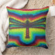 travesseiro decorativo de 20" x 20" com uma imagem, em ambos os lados, de uma libélula verde e vermelha de corante gravata num corante de gravata com aba arco-íris. Veja toda a coleção de Travesseiros Psychedelic 60s no DECOR | Seção Travesseiros.