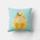 Um pato amarelo giro: sentado atrás do travesseiro, em pé na frente