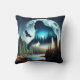 Travesseiro decorativo com Pé Grande com dupla exposição de árvores, rio, águia e lua de cheio.