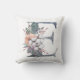 Uma bela letra E monogramada, almofada de acento com um design de aquarela que tem flores azuis, rosa e bege. Veja nossa coleção para outras letras do alfabeto.