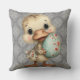 A Cute Easter Duckling Holding An Easter Egg Design On An Abstract Gray Damask Pattern Accent Throw Pillow For Your Home