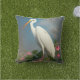 Este belo travesseiro decorativo de Egrete Branco apresenta a natureza como o seu melhor, ele é pregado numa cama de um arbusto de hibisco rosa com um fundo de cinzas. Este de um tipo original foi criado por Jacqueline Sleter de Bradenton, Flórida.