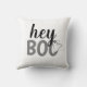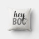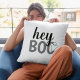 O moderno e fofo "Ei Boo" travesseiro de decoração de Halloween apresenta texto em preto, cinzas e letras brancas com um pequeno sotaque fantasma.