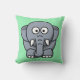 Este elefante de desenho animado bonitinho parece excelente sobre um fundo verde da casa. Este é um travesseiro decorativo desenhado e divertido que ficaria bom não apenas no quarto de uma criança ou sala de recreação da família, mas também em um escritório doméstico ou em qualquer sala na casa onde você queira se divertir um pouco.