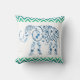 Complemente qualquer quarto com um estilo de sala de estar indiana. A almofada apresenta um Elefante Indiano Azul com um design de Chevron verde e azul.