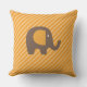 Travesseiro exterior com uma faixa diagonal cor de laranja e de sherbet com um elefante marrom com orelhas laranja.