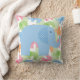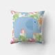 Elefantes no travesseiro Parade com um grande elefante azul e muitos elefantes menores de azul, laranja, verde e rosa.