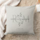 An elegant wedding pillow featuring a two tone soft gray monogram design, with ghosted initials gently placed behind the couple's names and accented by a refined botanical element. The names and accent are printed in rich gray, offering graceful contrast against an ivory faux linen background. Minimalist and timeless, this design blends quiet texture with subtle detail, creating a meaningful keepsake for your wedding day.