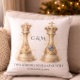 Almofada Elegant King Queen Couple Gift Gold Chess